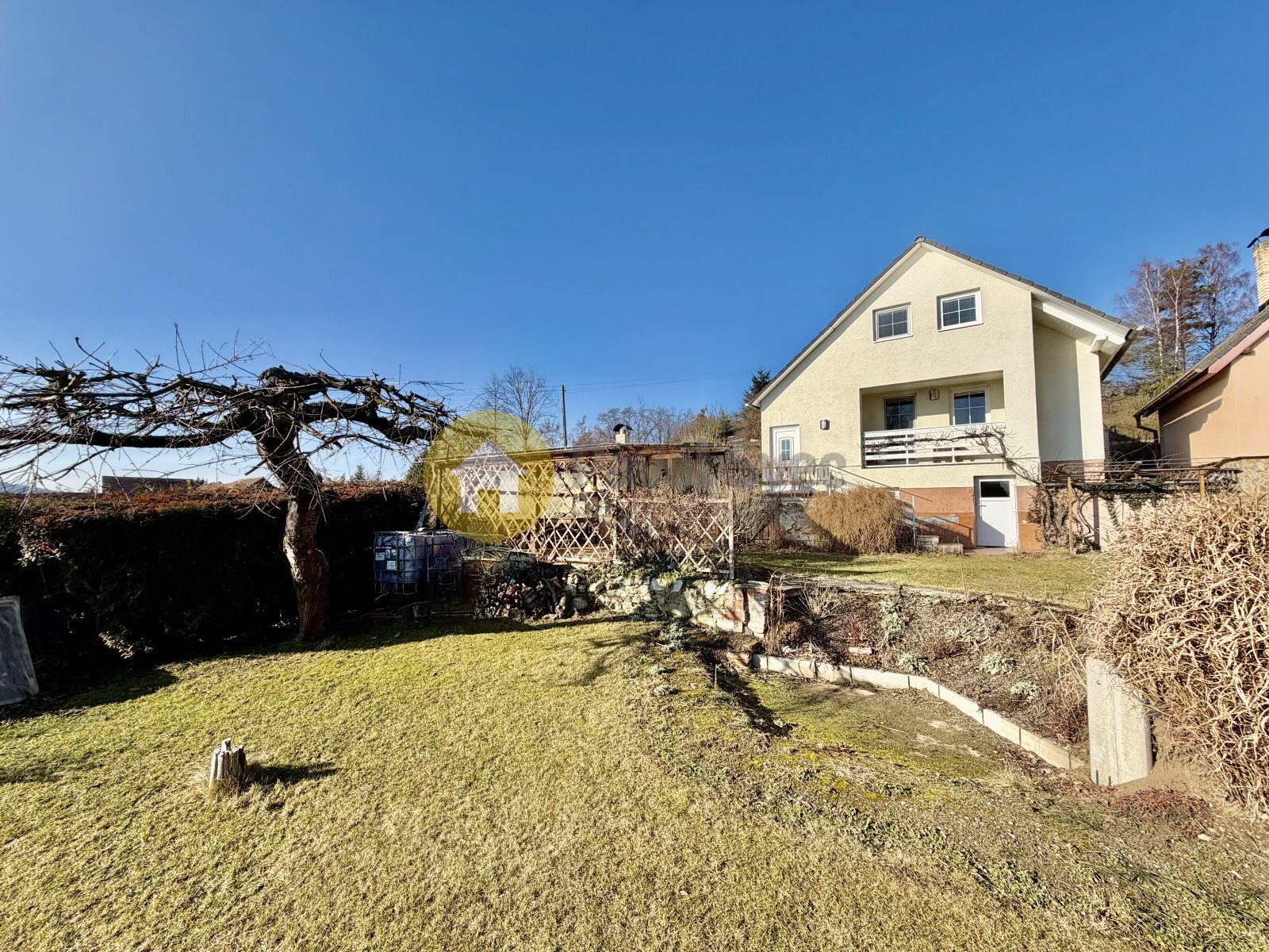 Na udržované zahradě je místo na kouzelné kryté posezení s ohništěm a navazující udírnou (přivedena voda, odpad a elektřina).