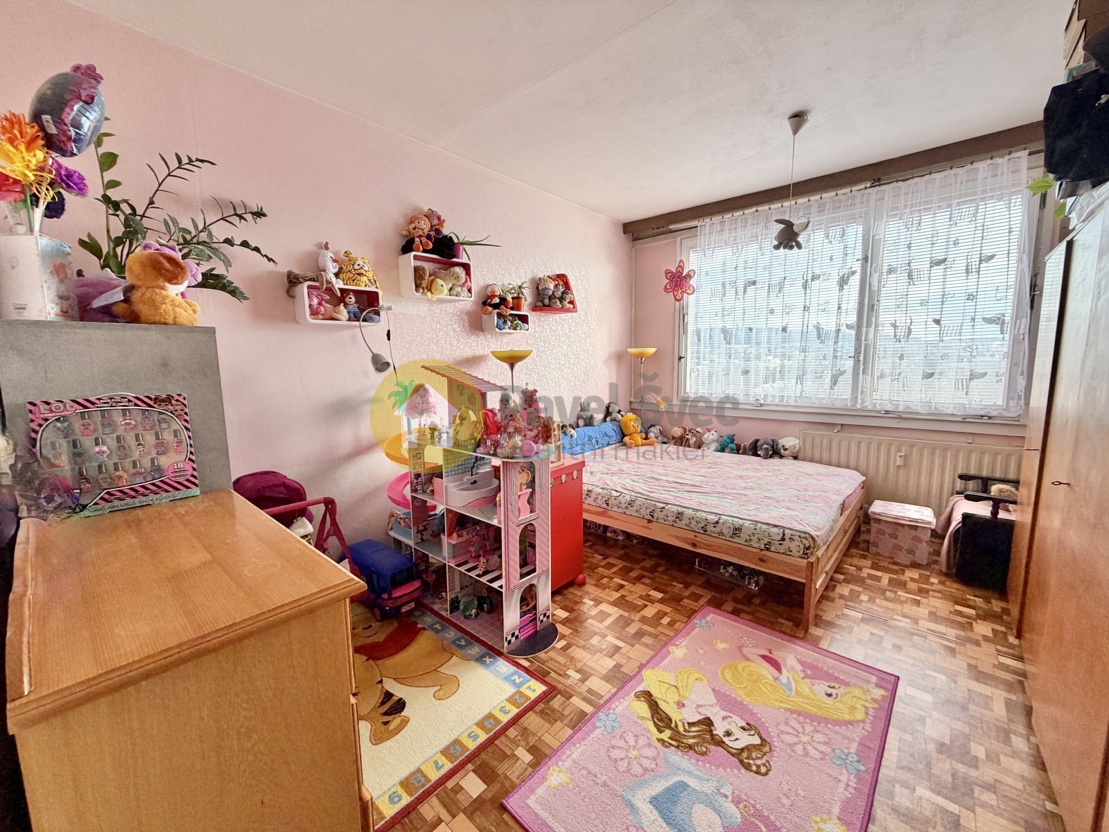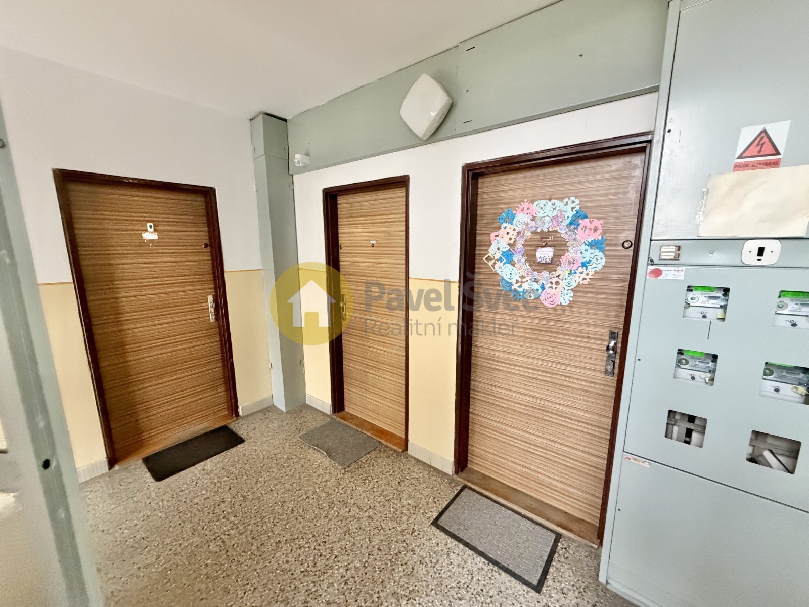 Prostorný byt (v chodbě a předsíni ideálně vestavné skříně) s praktickým řešením dispozice - do ložnice vstup z chodby bytu a do většího pokoje (obývací) jsou dokonce vstupy dva - z chodby a z kuchyně.