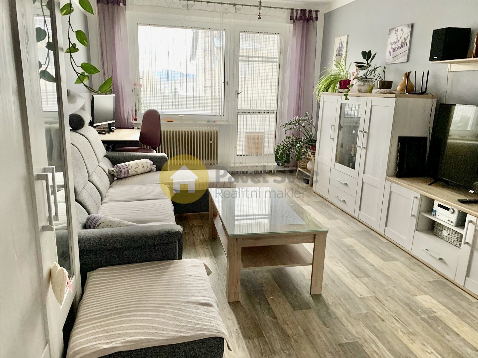 Obývací pokoj (pokoj č. 3 v půdorysu) s navazující prostornou lodžií (zasklená).