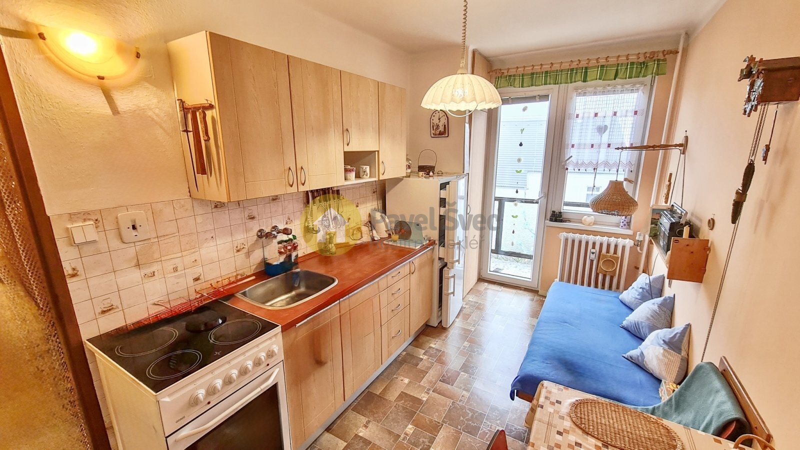 Z kuchyně východ na balkon, dva pokoje, samostatné WC a koupelna s vanou a připojením na pračku.