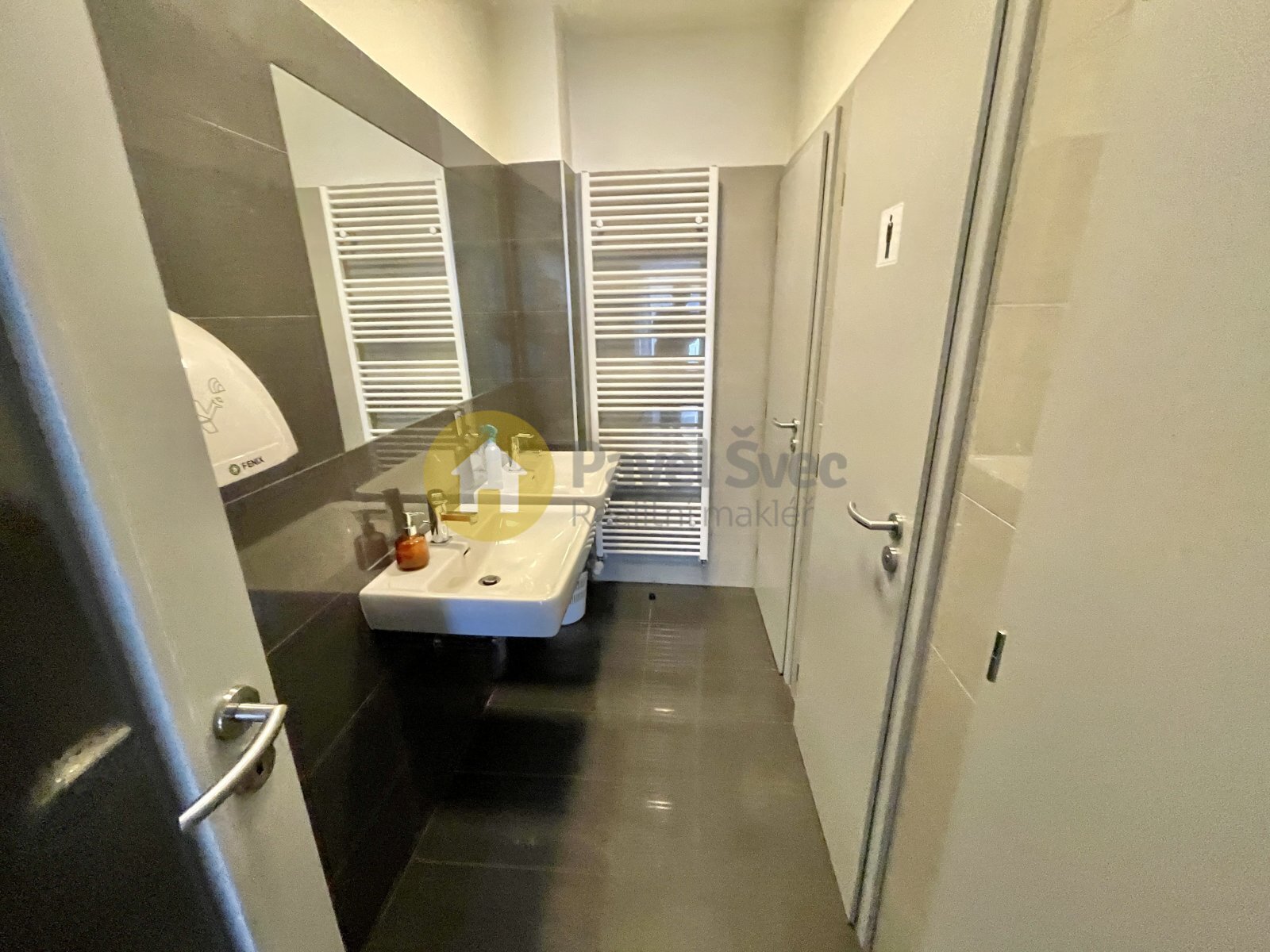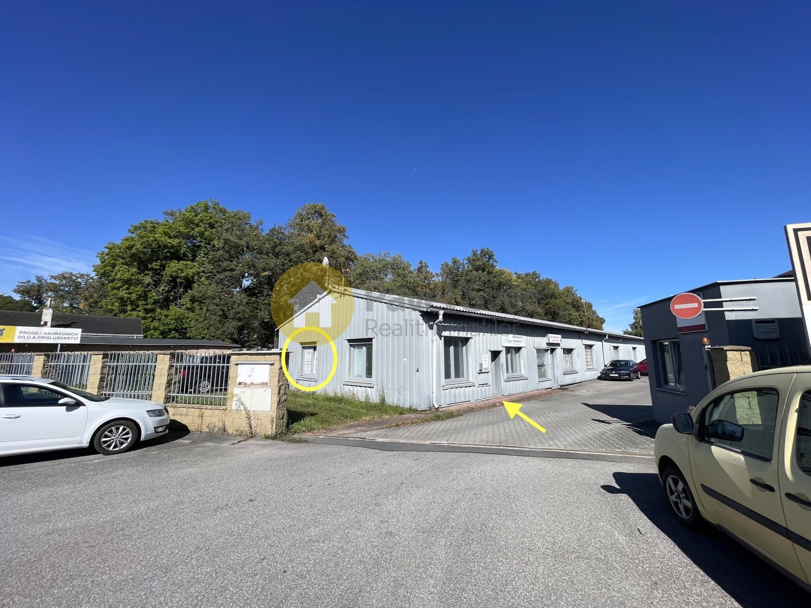 Kancelář s oknem a kobercem na podlaze (dojde k výměně a revitalizaci prostoru), přes chodbu sklad - místnost s oknem, topením a osvětlením.