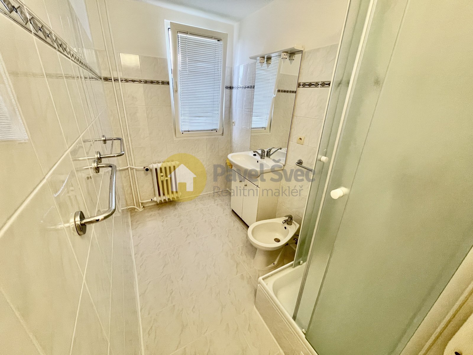 V koupelně sprchový kout, připojení pračky, bidet.